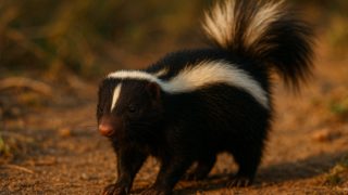 体は黒~黒褐色、腹側はクリーム色で、のどにはオレンジ色の斑点、顔は青白い地肌にピンク色の鼻と唇という、とても印象的な配色をしています。尾の先だけ白くなります。